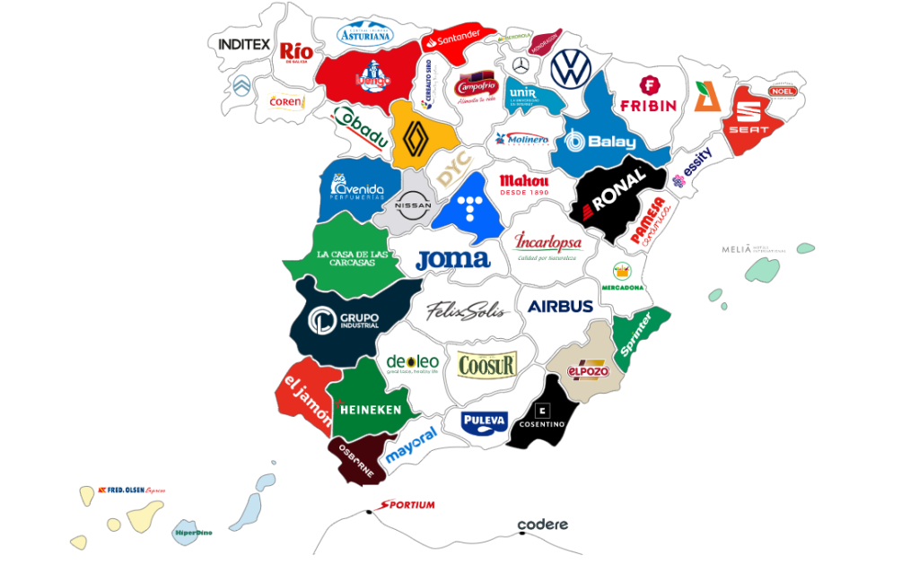 Consentino en Almería, Grupo Osborne y Acerinox en Cádiz, Deóleo, Covap y Cunext Copper Industries en Córdoba, Puleva y Covirán en Granada, Atlantic Copper en Huelva, Coosur y Valeo en Jaén, Mayoral y Dcoop en Málaga y Heineken, Endesa y Airbus en Sevilla.