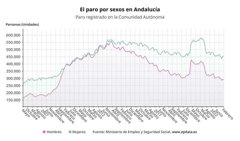 En Andalucía, el paro supone uno de los principales problemas estructurales. Unas cifras fluctuantes que, dependiendo de la época del año, mejoran o empeoran debido fundamentalmente a la importancia de la contratación temporal, tanto en el sector agrario como en el sector terciario. Sin embargo, la alta cifra de paro media se perpetúa año tras año, sin converger con la media nacional y, ni mucho menos, acercarse a los índices de las autonomías más prósperas.